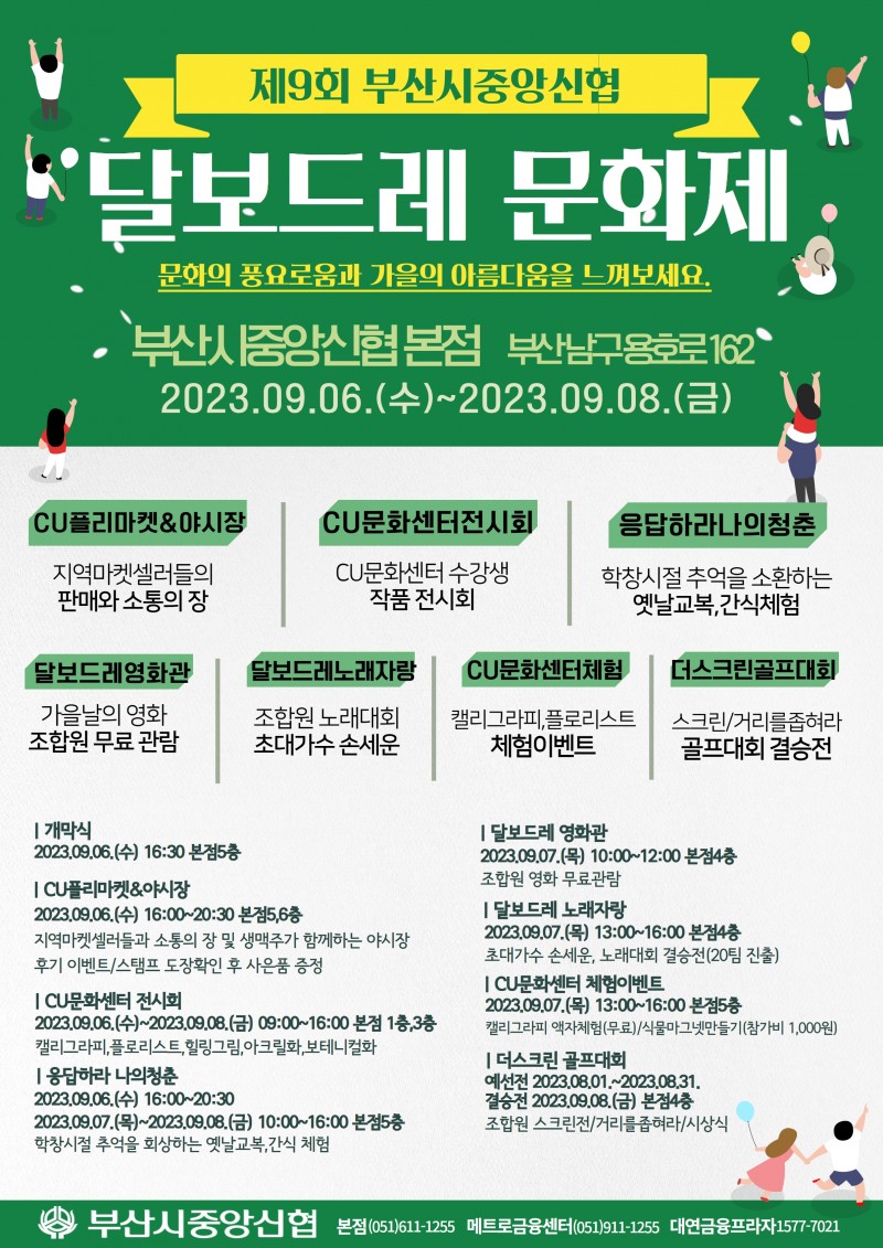 제9회 달보드레 문화제를 개최합니다! 다양한 즐길거리가 준비되어있으니 많은 참여와 관심 부탁드리겠습니다 ^-^♥