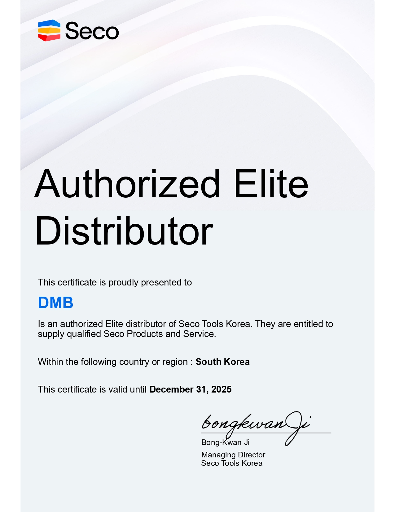 SECO 대리점 인증서