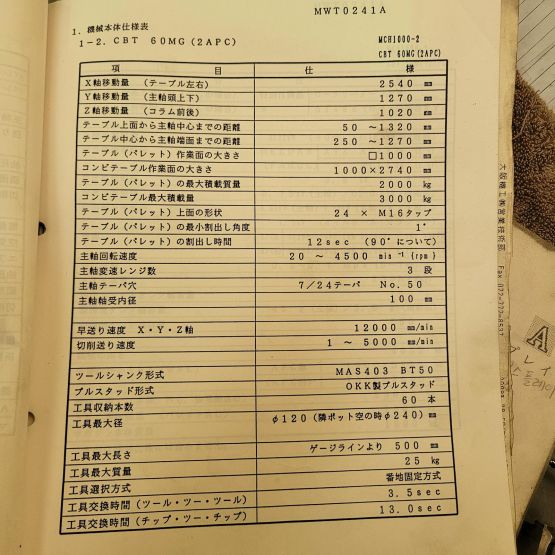 MACHINING CENTER(OKK,MCH 1000)