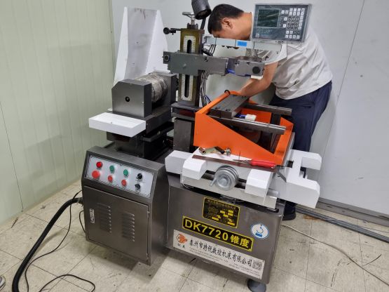 Taizhou Terui CNC Machine Co., Ltd. produces whole series of DK77 CNC edm wire cutting machines,which adopts high precision V-shaped guide rail(Linear guide rail optional) and P3-grade high precison ball screw. The products have high quality, complete models, long service life and high precision. Machine specifications can be customized according to customer needs,like non-standard models DK7740(45)F,DK7750(55)F,DK7763F,DK7780F,DK77100F,DK77120F or even larger models. The company also produces ±30°, ±45° swing large taper machines and CNC high-precision middle speed edm wire cutting machines(Precision≤±0.005mm,roughness≤1.0μm). The following are the main parameters of DK77 series machines: 1.Standard maximum cutting taper:±6°/80mm;(±15°,±30°,±45° are optional) 2.Precision ≤ 0.02mm,according to GB7926-2005 standard;(If linear guide equipped, the precision can reach 0.01mm) 3.Best surface roughness ≤ Ra2.5μm(single-cut),Ra1.5μm(multi-cut); 4.Molybdenum wire diameter:0.1-0.2mm; 5.Max. cutting speed≥120mm^2/min; 6.Voltage:3 phase 380V(single phase 220V,3 phase 220V or other voltage can be customized),Power:1.5KW; 7.Working fluid:Water-based emulsion. |