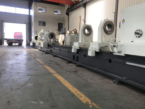 The machine is a specially used for boring long and thin pipes. It adopts the processing mode of workpiece rotation (passing through the spindle hole of headstock) and cutting tool bar is fixed and only for feed motion. When boring, the cutting fluid is supplied by the oil pressure head, and the cutting chips are discharged forward. The cutting tool feed adopts AC servo drive system to realize stepless speed regulation. Headstock adopts multi-stage gear speed change, with a wide speed range. Mechanical locking device is used for clamping of the oil pressure head and workpiece.