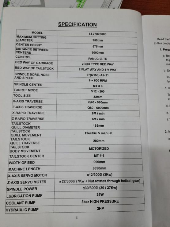 CNC LATHE (L&L, LL750×6000)