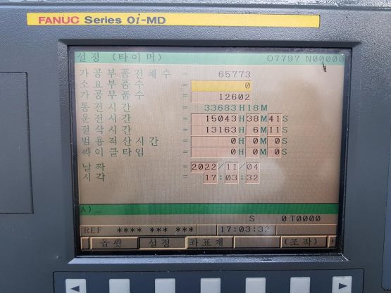 - 규격 FANUC 0i-MD, AICC2, 데이터서버, 에어블로우, 오토파워오프 BT40, 12000RPM(직결식), ATC30EA, 공구길이측정장치(Z마스터), 스핀들오일쿨러, 칩컨베이