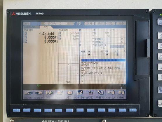- 규격 미쯔비시 M700(컨트롤러), 에어블로우, 오토파워오프 BT40, 12000RPM(벨트식), ATC28EA, 공구길이측정기, 스핀들오일쿨러, 칩컨베이어