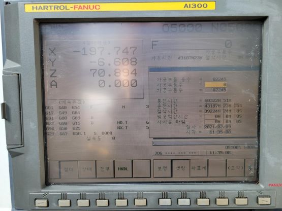 - 규격 FANUC 18i-MB, NANOHP, 데이터서버, 에어블로우, 오토파워오프 BT50, 10,000RPM(직결식), ATC 24EA, 스핀들오일쿨러