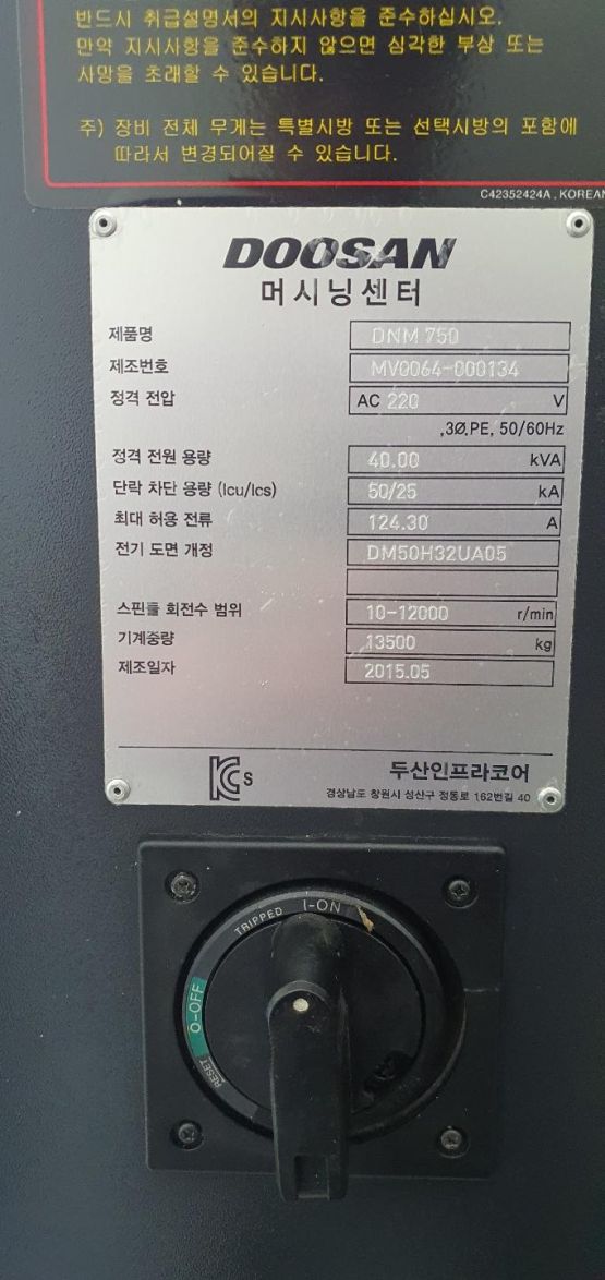 두산 7호 머시닝센타 DNM750 중고머시닝센터