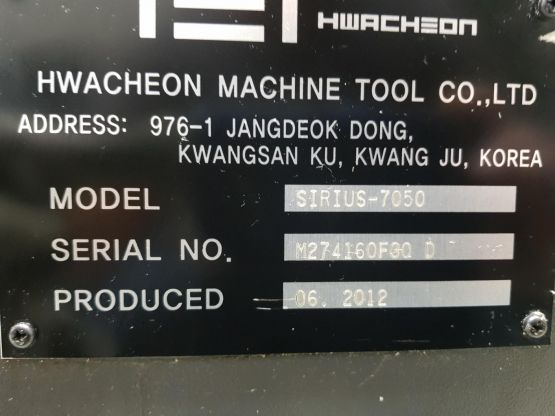 화천 7호 머시닝센터 SIRIUS-7050 중고머시닝센타