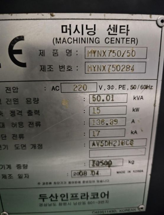두산 Mynx750/BT50/6K