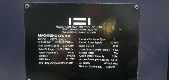 화천 5호 머시닝센타 VESTA-1000+ 중고머시닝센타