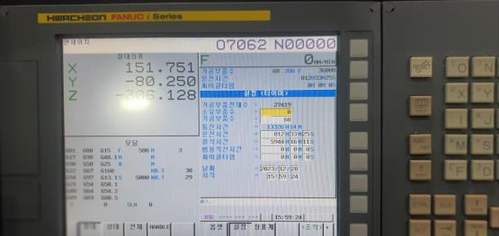 - 규격 FANUC 0i-MF, AICC2, 데이터서버, 에어블로우, 오토파워오프 BT40, 12000RPM(직결식), ATC 30EA, 주축냉각장치, 칩컨베이어(후방)/칩통