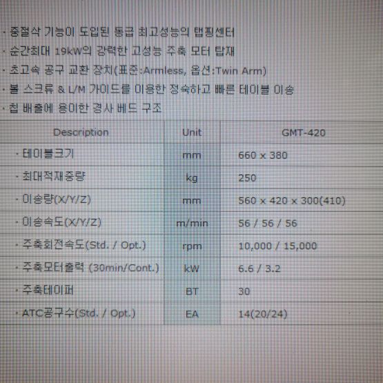 장비명 : GMT420 탭핑센터