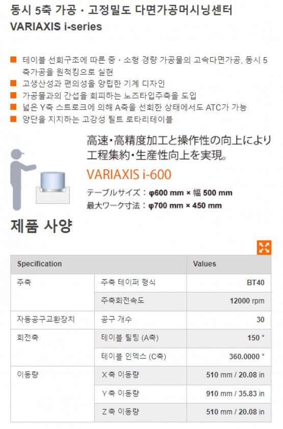 - 규격 VARIAXIS i-600