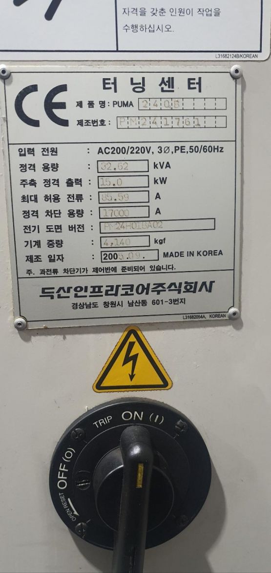 두산 8인치 CNC선반 PUMA240B 중고CNC선반