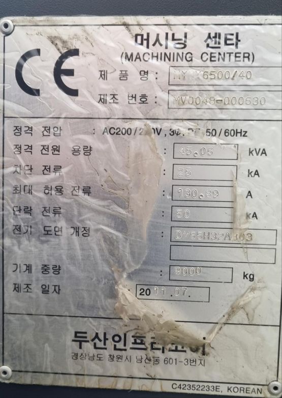 두산 6.5호 머시닝센터
