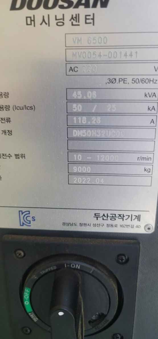 두산 6호 머시닝센터 VM6500 중고머시닝센타