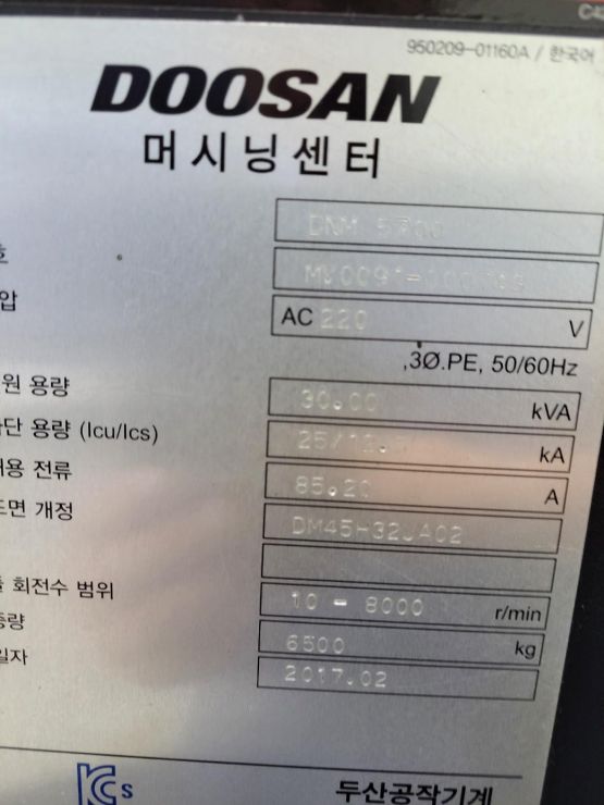 • 규격 5호기머시닝센타