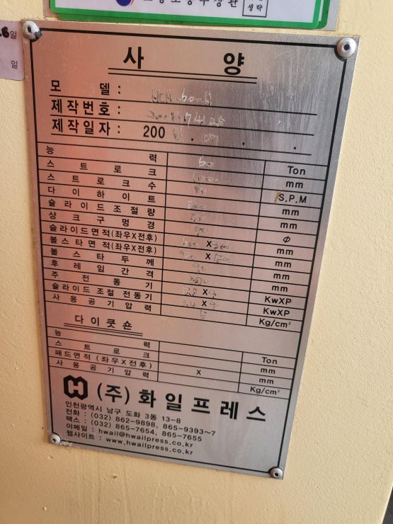 "(주) 세광기계 " 화일 HCA-60-A 프레스 판매 합니다.