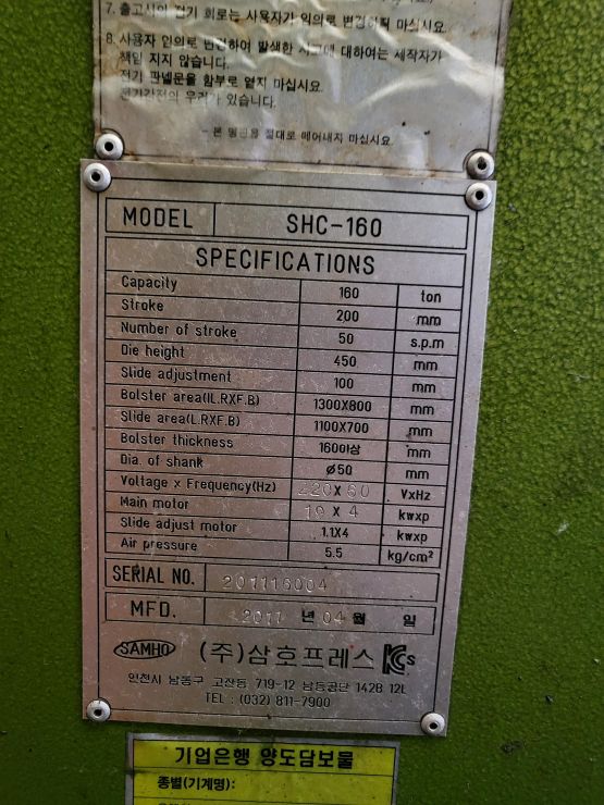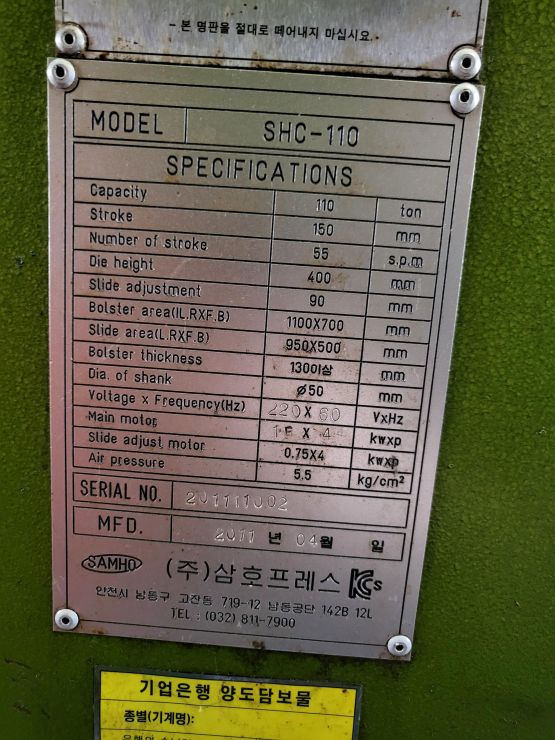 "(주) 세광기계 " SHC-110톤 2대 프레스 판매 합니다.