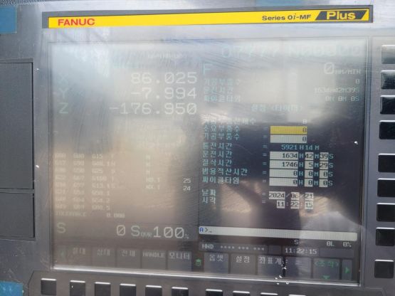 - 규격 FANUC 0i-MF, AICC2, 에어블로우, 오토파워오프 BT40, 10000RPM, ATC 24EA, 공구길이측정장치(레니쇼우), 칩컨베이어