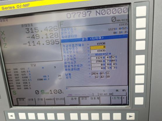 - 규격 FANUC 0i-MF, AICC2, 데이터서버, 에어블로우, 오토파워오프 BT40, 12000RPM, ATC 30EA, 스핀들오일쿨러 삼천리 파워바이스 3개, 툴 30개 포함.
