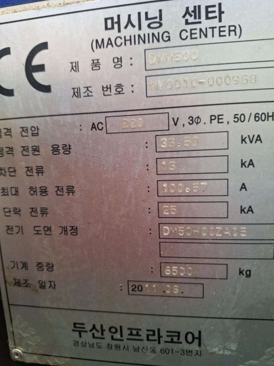 두산 5호 머시닝센터 DNM500 중고머시닝센타