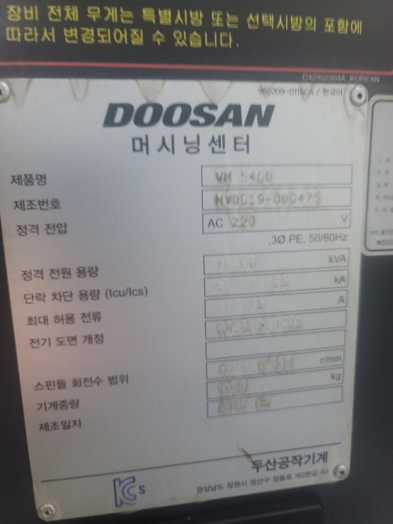 두산 5호 머시닝센터 VM5400 중고머시닝센터