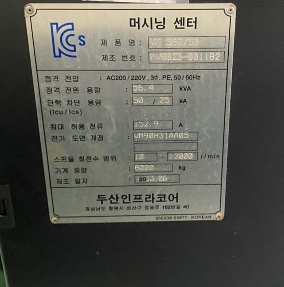 장비명 : VM560/50