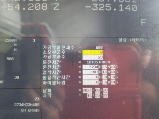 - 규격 FANUC 0i-MF, AICC2, 데이터서버, 에어블로우, 오토파워오프 BT40, 12000RPM, ATC 30EA, 스핀들오일쿨러, 칩컨베이어/칩통, 집진기