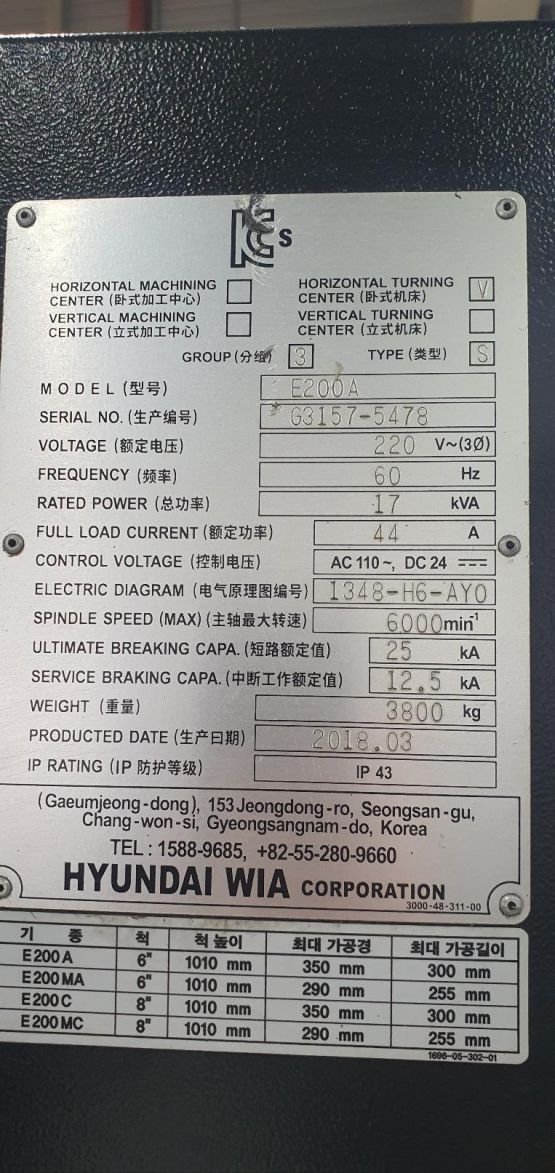 현대위아 6인치 CNC선반 E200A 중고CNC선반