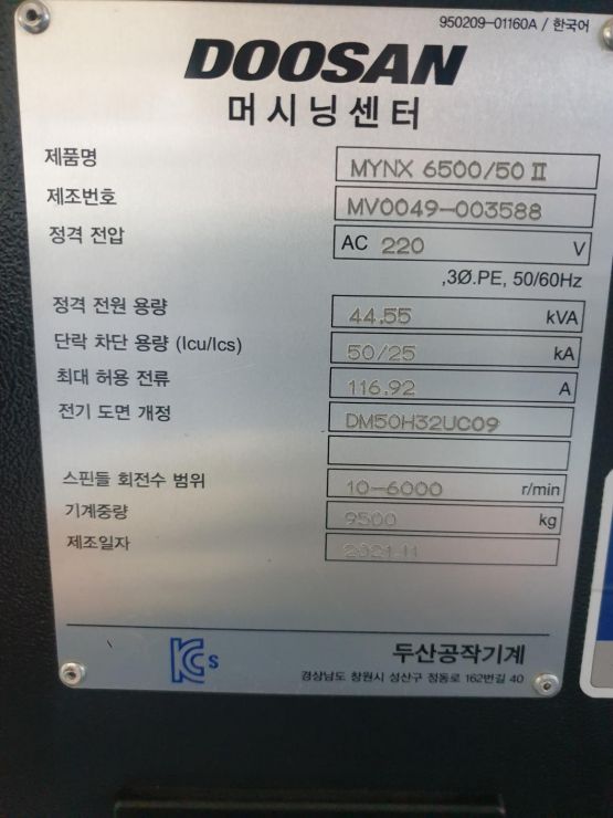두산 6.5호 머시닝센터 MYNX6500/50Ⅱ 중고머시닝센타