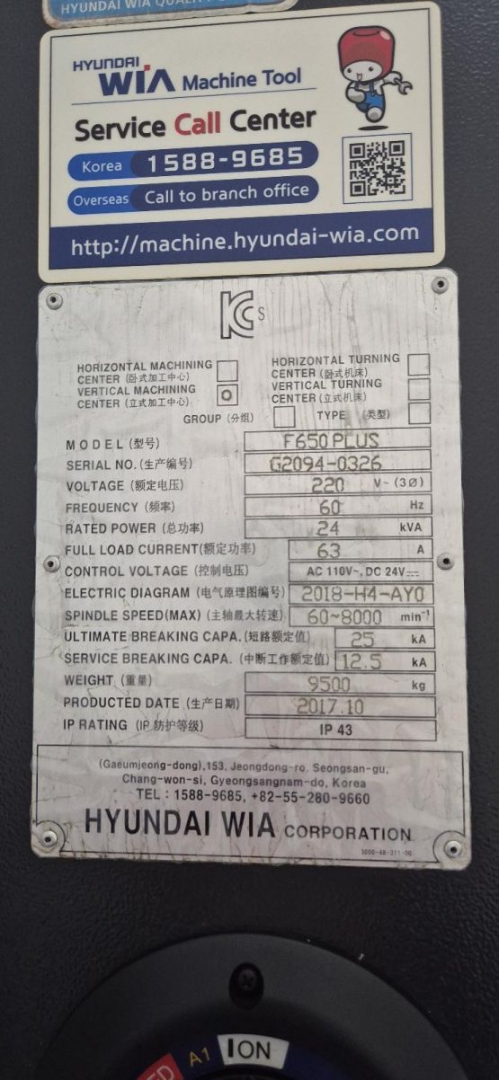 현대위아 6호 머시닝센터 F650+ 중고머시닝센터