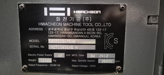 화천 7호 머시닝센터 SIRIUS-7040 중고머시닝센타