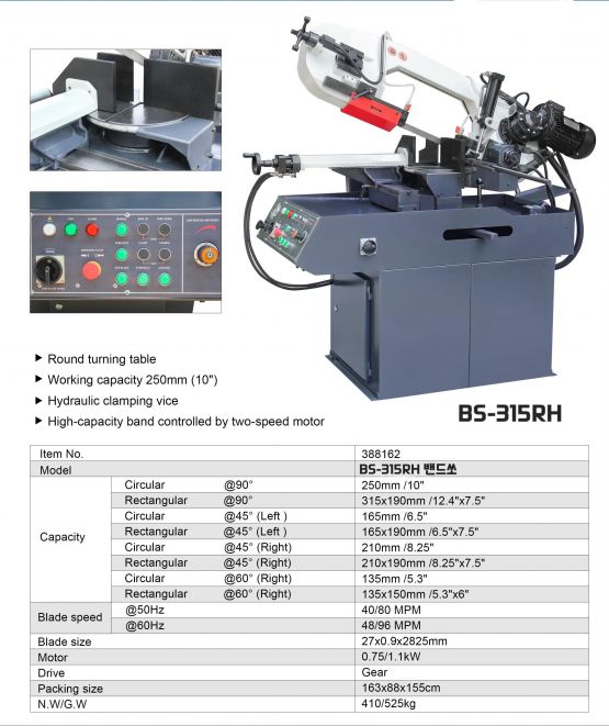 라운드테이블 밴드쏘 BS-315RH 톱기계
