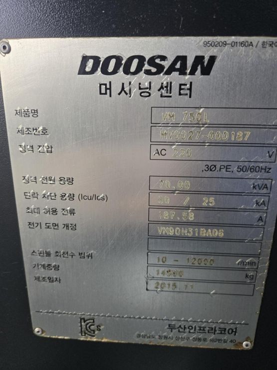 두산 7.5호 머시닝센터 VM750L 중고머시닝센타