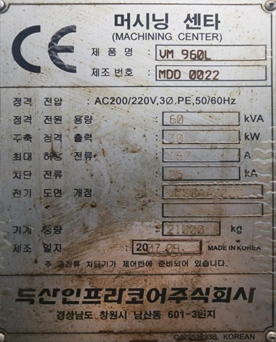 두산9호(VM960L)머시닝센터