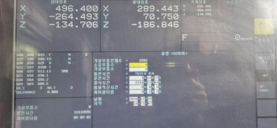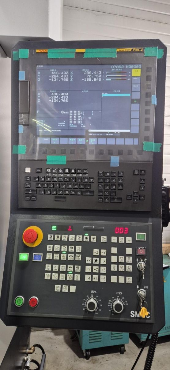 - 규격 FANUC 0i-MF, AICC2, 데이터서버, 에어블로우, 오토파워오프 BT40, 12000RPM, ATC 30EA, 스핀들오일쿨러, 칩컨베이어/칩통