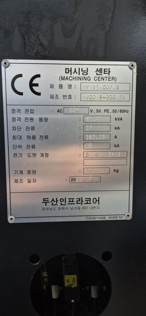 두산 5호 머시닝센터 MYNX5400 중고머시닝센타