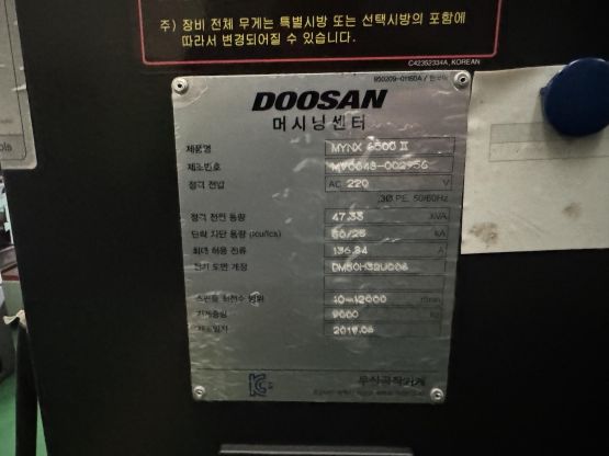두산 6.5호 머시닝센터 MYNX6500 II (12K)