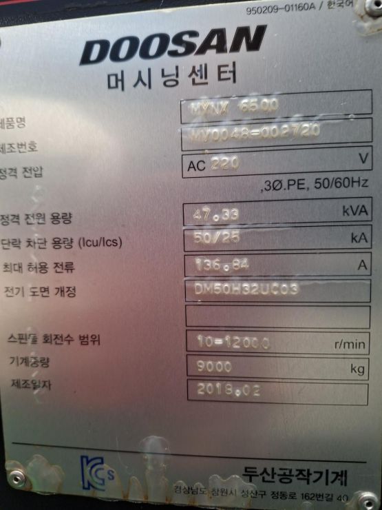 두산 6.5호 머시닝센터 MYNX6500 중고머시닝센타