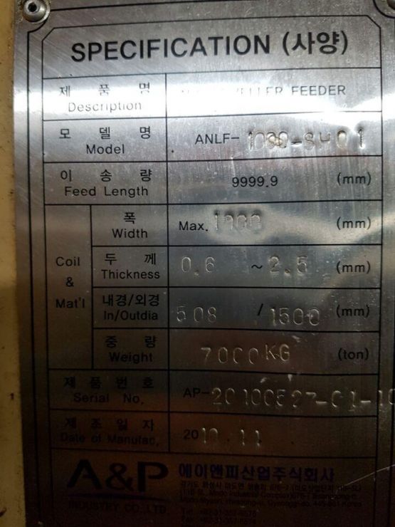 에이앤피(A&P) 샤라인 NC레벨러피더 2.5T-1000, 코일카,샤링기포함 (2010년 11월)