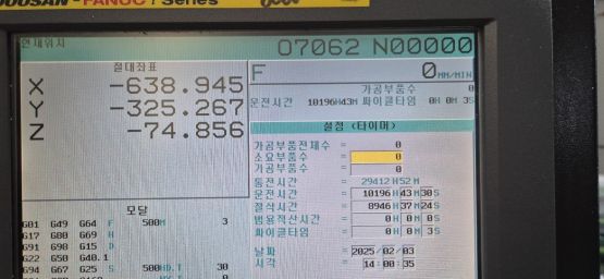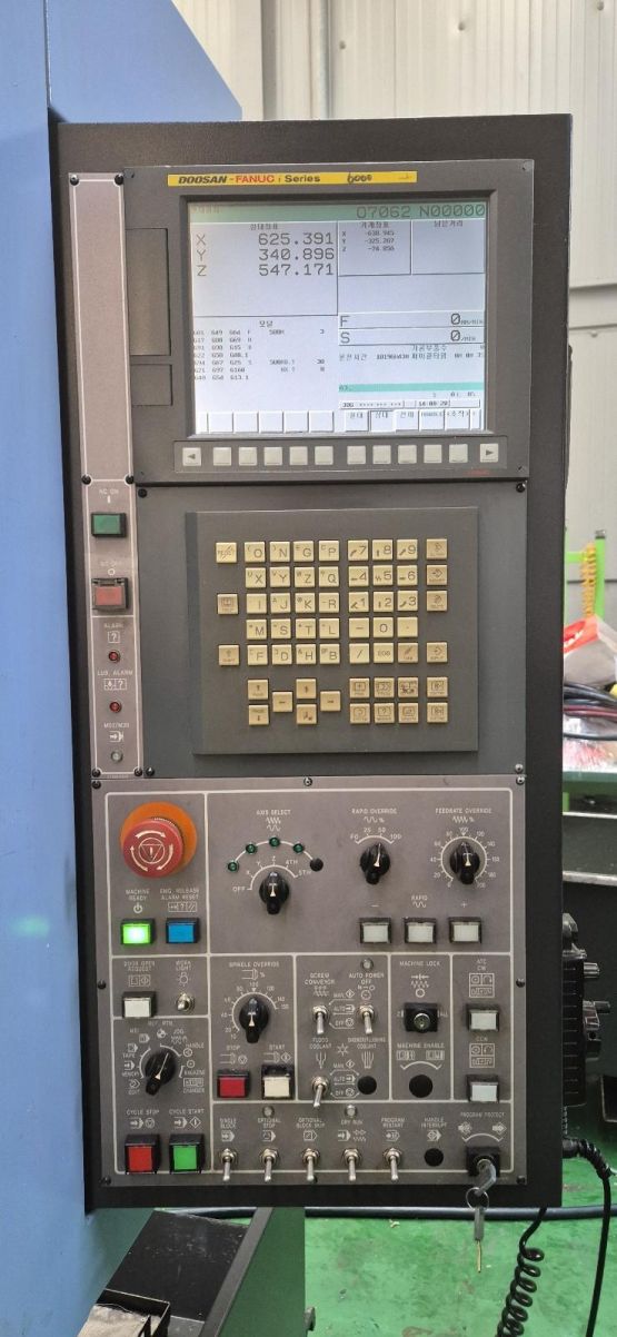- 규격 FANUC 0i-MD, 에어블로우. 오토파워오프, BT40, 12000RPM, ATC 30EA, 스핀들오일쿨러, 칩컨베이어/칩통
