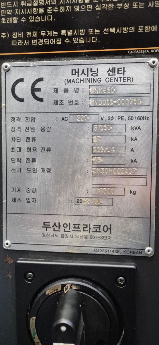 두산 6.5호 머시닝센터 DNM650 중고머시닝센타