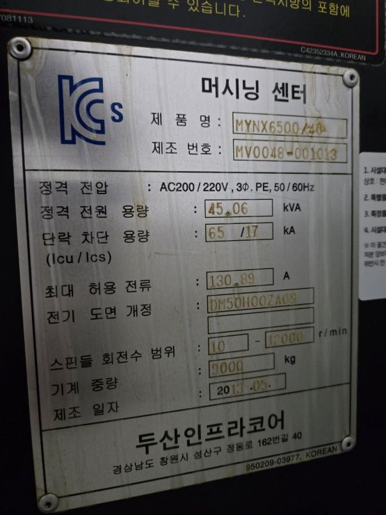 두산 6호 머시닝센터 MYNX6500 중고머시닝센타