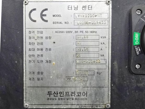 두산 8인치 CNC선반 Lynx220C-NT 2012년