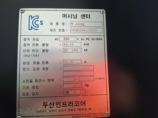 두산 탭핑센터 T4000L/12K 중고 탭핑센터