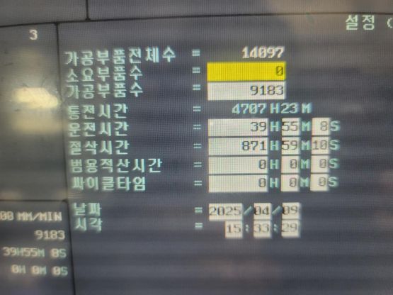 - 규격 FANUC 0i-MF, AICC2, 데이터서버, 에어블로우, 오토파워오프 BT40, 10000RPM, ATC 30EA, 주축냉각장치, 칩컨베이어/칩통