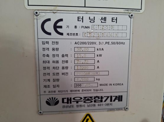 대우 10인치 CNC선반 PUMA CT250 중고CNC선반