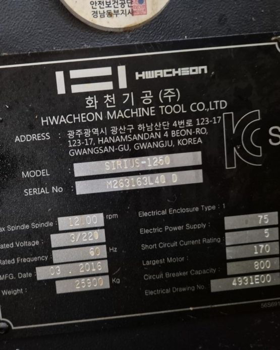 화천 머시닝센터 SIRIUS-1250 12K (2016년 3월)