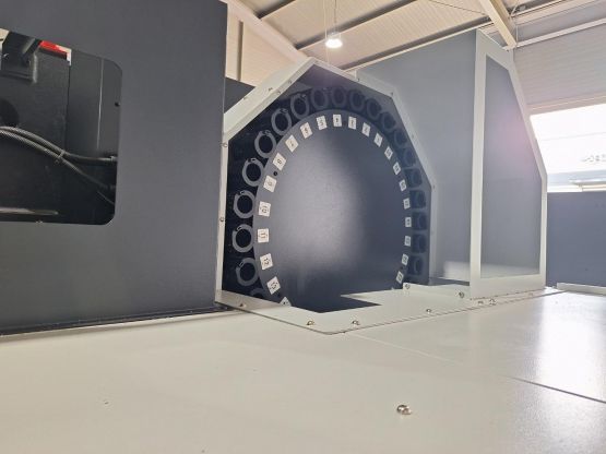 - 규격 FANUC 0i-MF, AICC2, 데이터서버, 에어블로우, 오토파워오프 BT40, 12000RPM, ATC 30EA, 스핀들오일쿨러, 공구길이측정장치(레니쇼우), 칩컨베이어/칩통