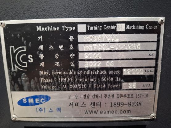 스맥 6.7호 머시닝센터 MCV6700L 중고머시닝센타